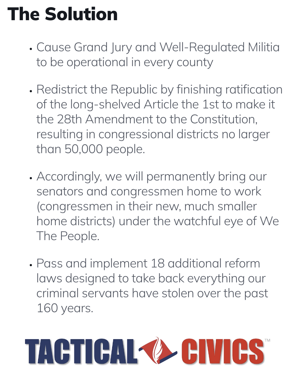 All of us should be members of TacticalCivics(.)com. We're taking America back county-BY-county. Join your local county chapter. READ David M. Zuniga's book, "The GREAT WE-SET!" Available on Amazon. AND watch our video. We are obeying Benjamin Franklin's challenge. https://twitter.com/i/status/1631... View More