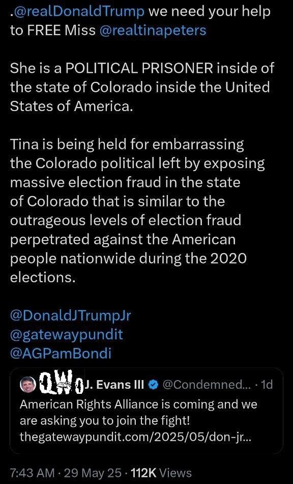 Tina Peters Exposed the Voter Fraud in Colorado. Secretary of State Jenna Griswold Railroaded and Jailed Her to Cover Up the Crime!