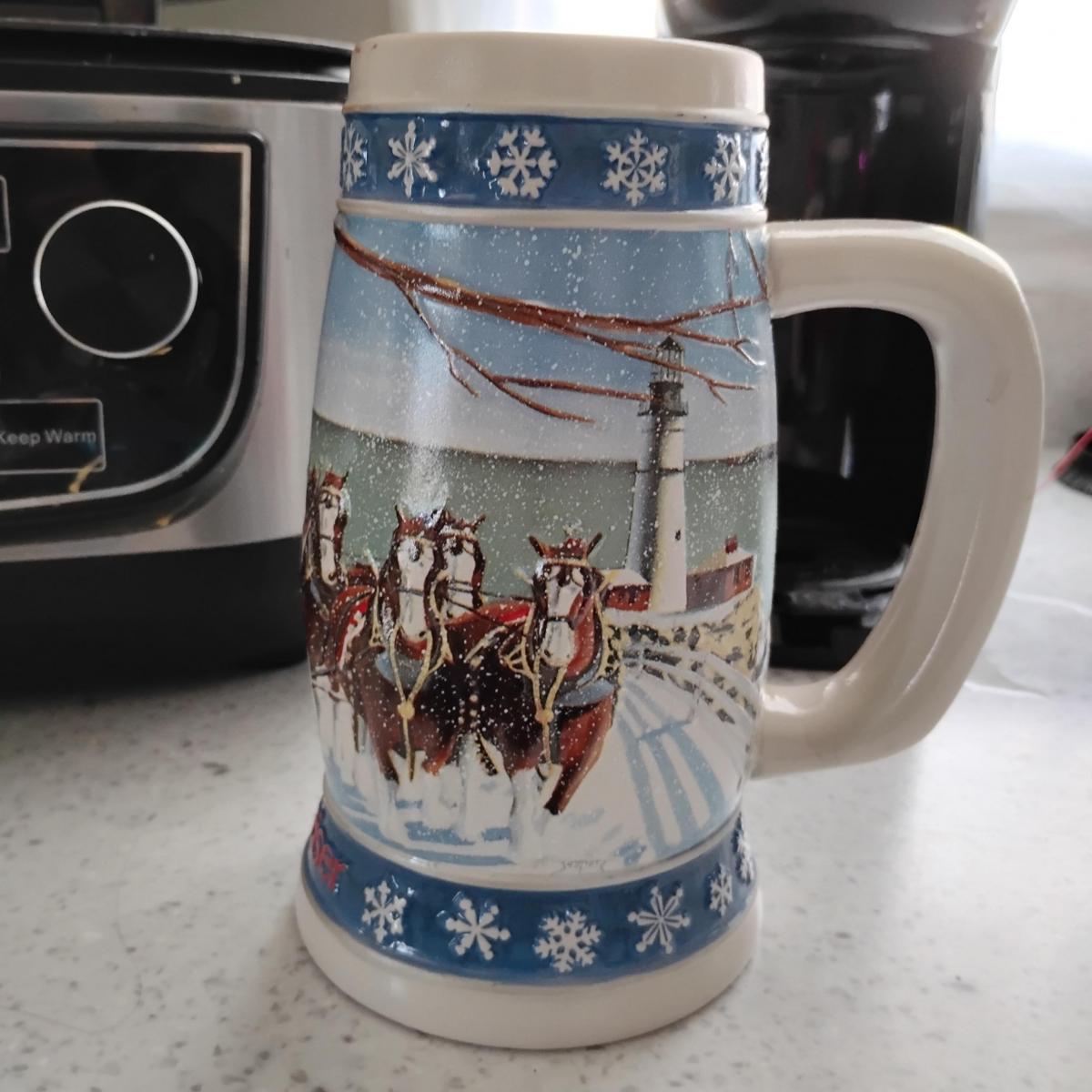 Please... View MoreVintage 1995 Budweiser Beer Anheuser-Busch "Lighting the Way Home" Holiday Stein Ceramic