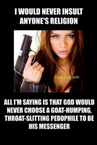 Islam..., a cult for murderous psychopath, uneducated, ignorant and brain dead segment of the worldwide population. A more dangerous movement than nazism and communism put together. Islam wants the world to be a caliphate and control the world through terror and mayhem. It has to be stopped. As of t... View More