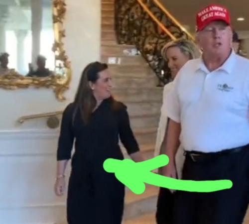 Remember the pic I asked you about...Woman and Trump walking away from chopper....not sure but...same hair..maybe height and seemingly same outstretched of leg to walk...and looks a lot like same smile...maybe slight weight difference...possibly aged...but ...look at belt buckle...is it western? Or ... View More