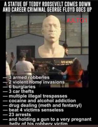 JUST READ A POST WHERE THEY REPLACED TEDDY ROOSEVELT STATUE WITH A STATUE OF THIS NIGGER