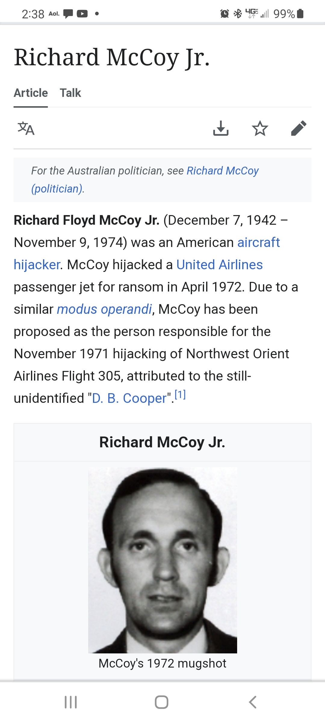 DB WAS SHOT & KILLED BY FBI 2 YEARS AFTER THE FIRST HIGHJACKING.... THE MONEY HAS NEVER BEEN FOUND