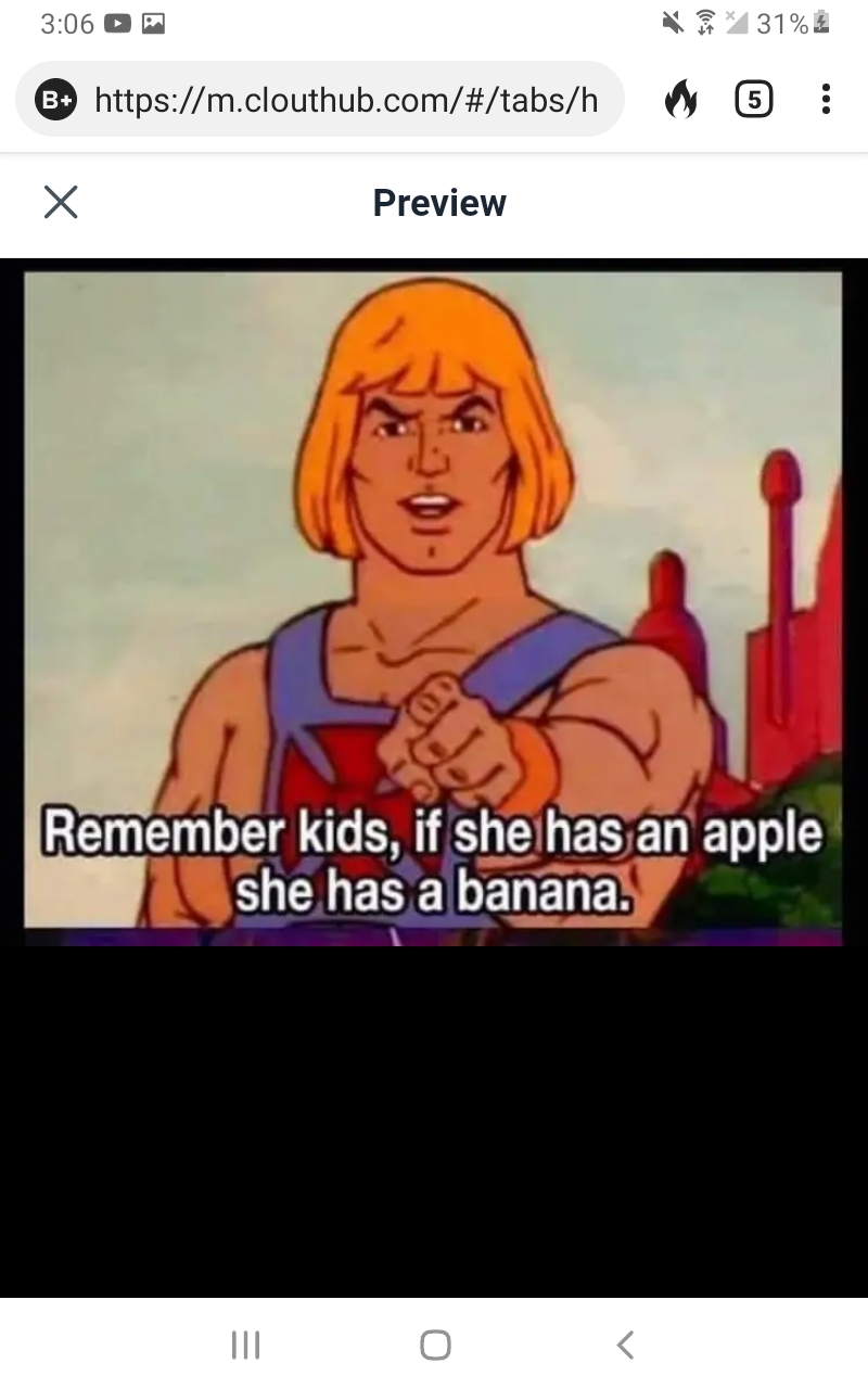 That might be a dude. What did Heman say? If she has a apple, she has a banana.