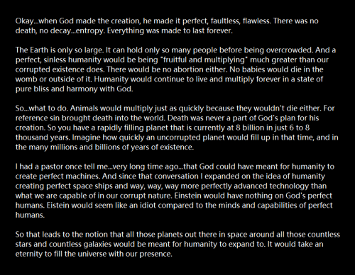 I have a theory about space, why God made it so large and filled with so many stars and planets