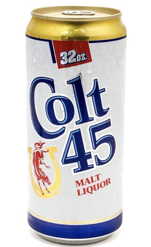 Although I’m not anti-guns, I do remember drinking this, as this would be my Colt 45 (pictured below). Maybe she should pose with a can of this and out the two photos together. Ha