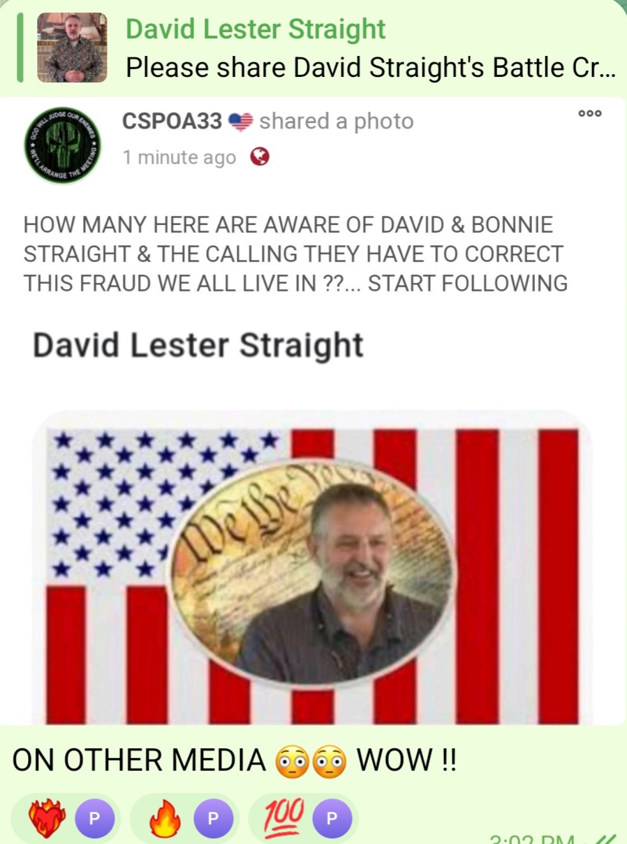 HOW MANY HERE ARE AWARE OF DAVID & BONNIE STRAIGHT & THE CALLING THEY HAVE TO CORRECT THIS FRAUD WE ALL LIVE IN ??... START FOLLOWING