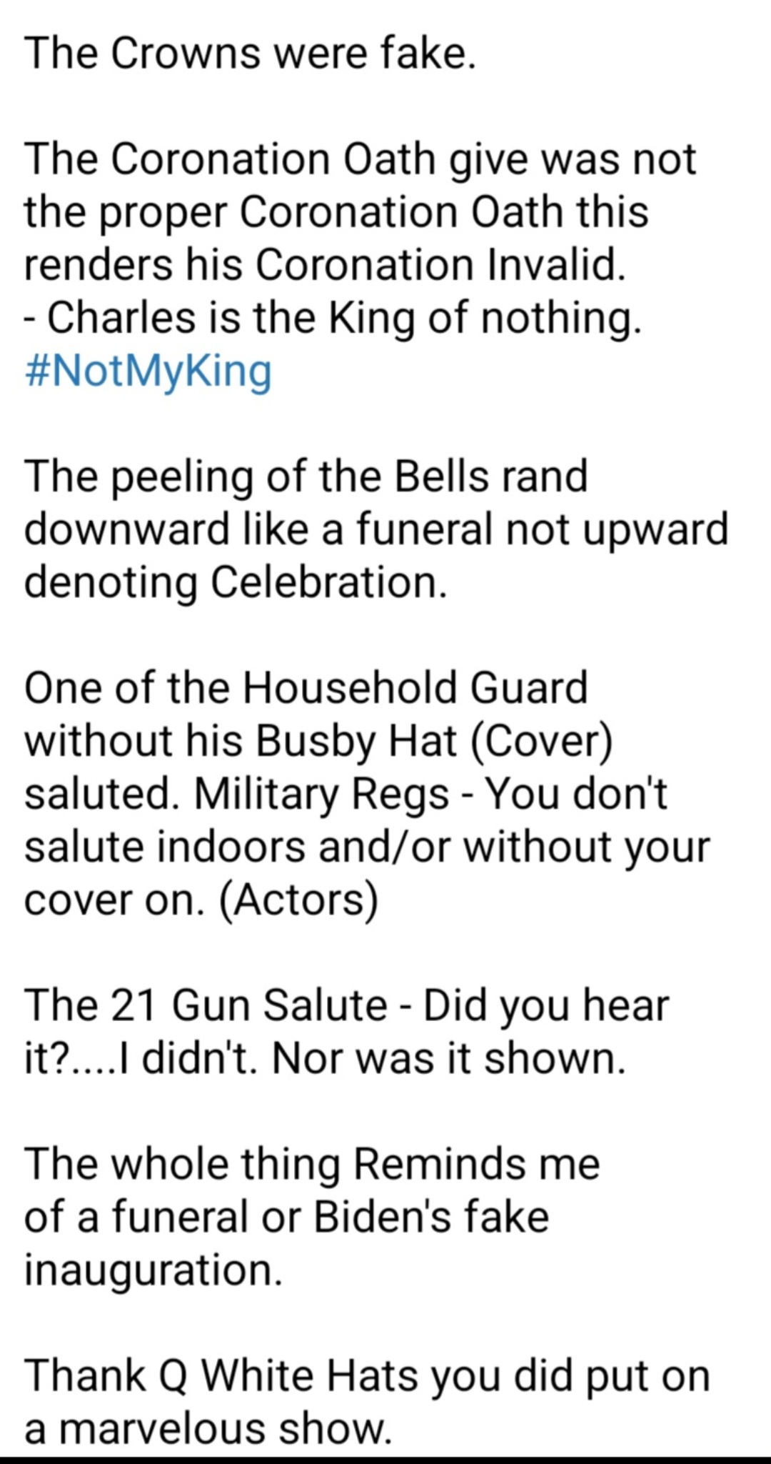 HighHeels.β........ WELL IF THAT WERE THE REASON. HIS TONGUE WOULD STILL SNEEK OUT π€π€.... THE WHOLE THING WAS A WHITEHAT PRODUCTION. THE OATH WASNT EVEN THE RIGHT OATH. ITS ALL FAKE, HE IS THE KING OF NOTHING , JUST LIKE BIDENS FUNERAL IN 21'