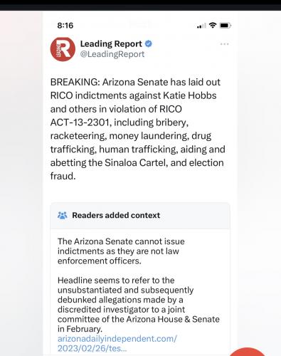 This just happened! Go Kari Lake! An actual indictment for criminal activity by a government body. Not some fake ass smokeshow for clickbait and virtue signals!