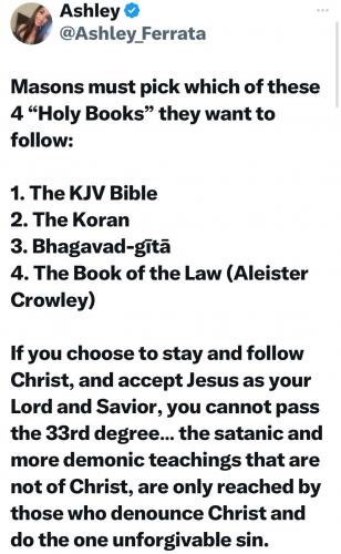 NINO NINO NINO, YOUR RIGHT BIG GUY, CANT BE A CHRISTIAN & FREEMASON .... IN HIS MIND HE COULD BE BOTH HE IS BAPTIST & THEY BELEIVE IN