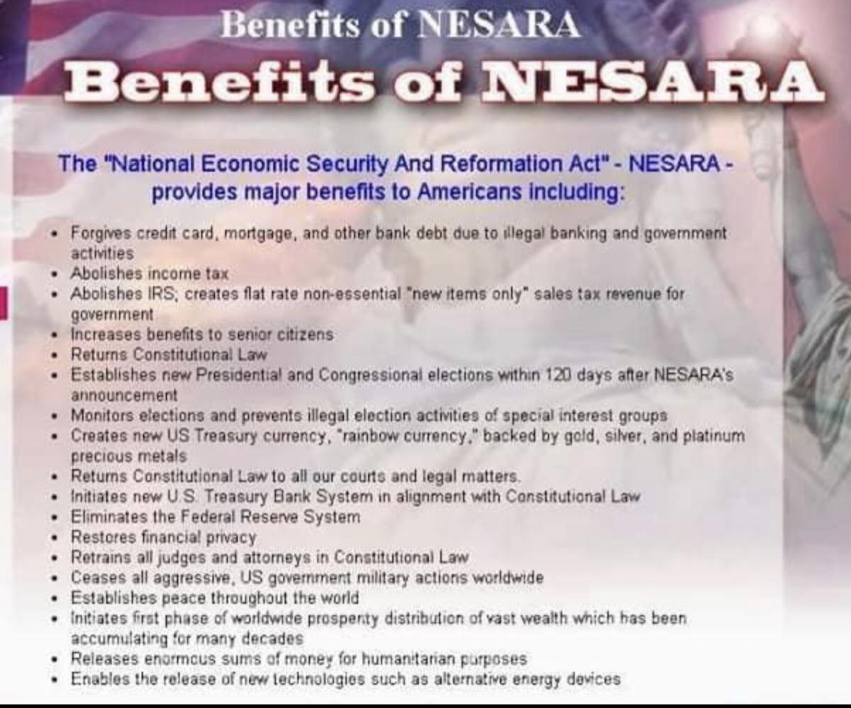 NESARA 😂. DONT SAY: NASARA THATS DEEP STATE
