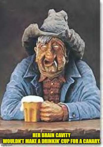 His brain cavity wouldn’t make a drinkin’ cup for a canary.