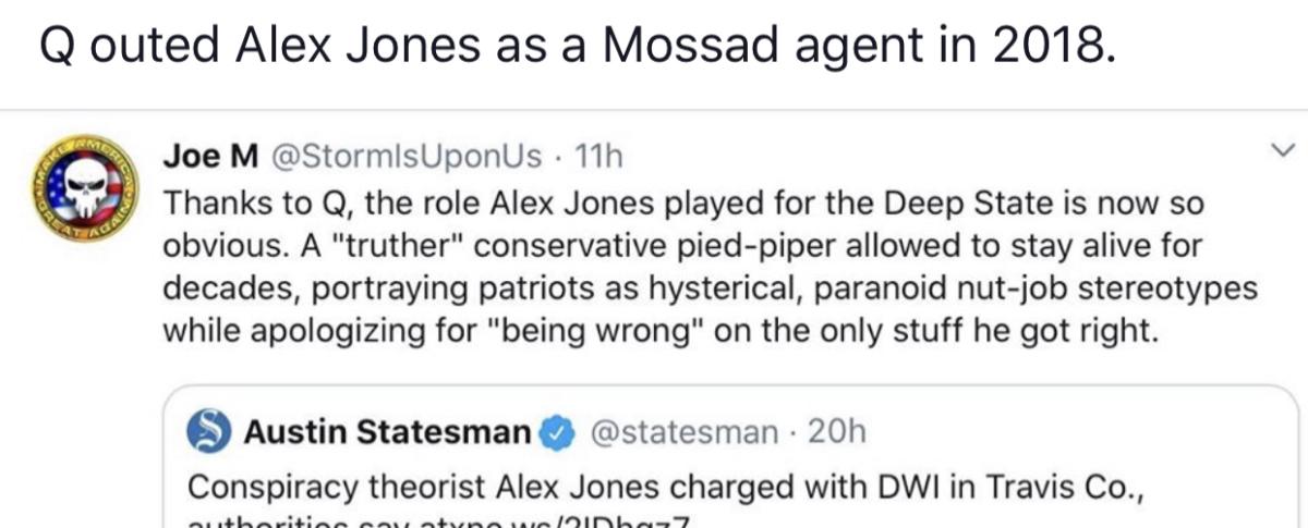 Q CALLED ALEX JONES OUT IN 17β & 18β & 19β Q IS MILITARY INTELLIGENCE PEOPLE Q KNOWS π₯π₯π₯